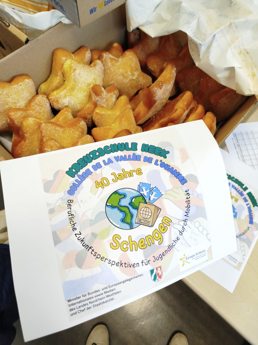 Anlässlich des 40. Jahrestages des Schengen-Abkommens erlebte die Kreuzschule Heek einen besonderen Tag ganz im Zeichen des europäischen Miteinanders. Das 1985 unterzeichnete Abkommen ist bis heute eines der wichtigsten Symbole für Freiheit und offene Grenzen in Europa. Es ermöglicht uns, unkompliziert über Nachbarländer zu reisen – sei es für einen Kurztrip, um Freundinnen und Freunde zu besuchen oder um Urlaub zu machen. Eine Errungenschaft, die aus unserem Alltag kaum wegzudenken ist.