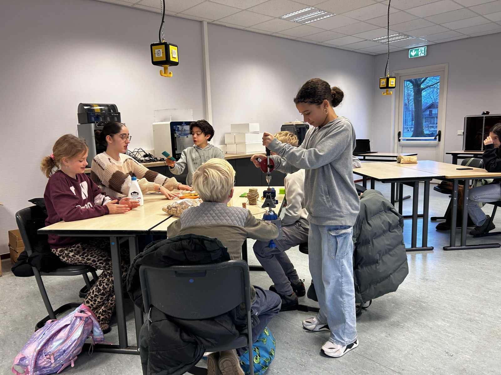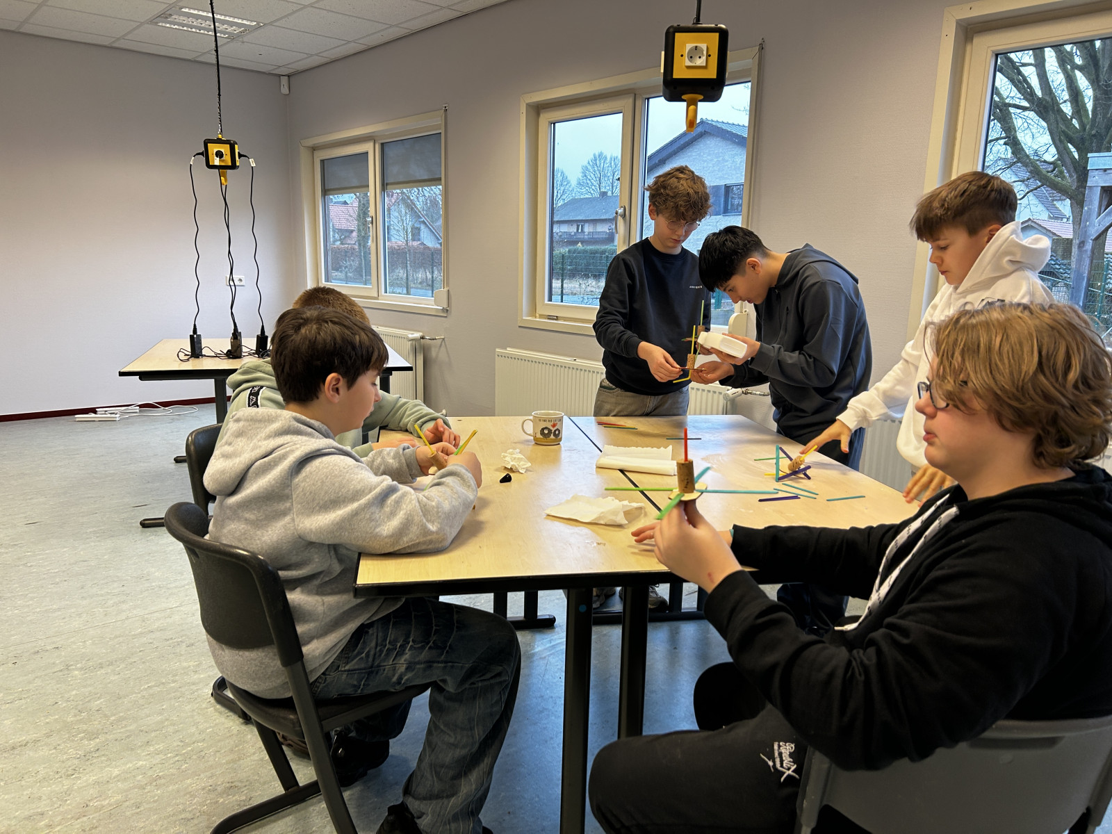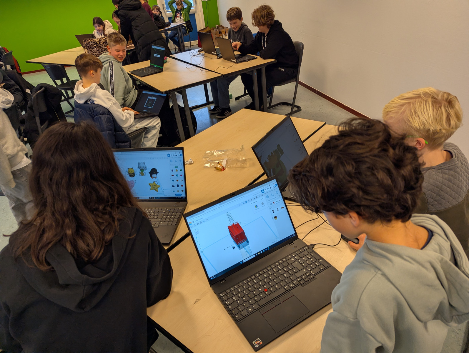 Der Tag begann mit einer spannenden Arbeitsphase im neuen MakerLab der Kreuzschule Heek, einem Raum, der speziell für kreative, technische Projekte wie diese geschaffen wurde. Hier wurden die deutschen und niederländischen Schülerinnen und Schüler in zwei Gruppen aufgeteilt, die jeweils verschiedene Aspekte des Projekts bearbeiteten.