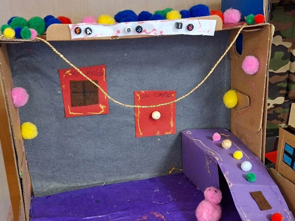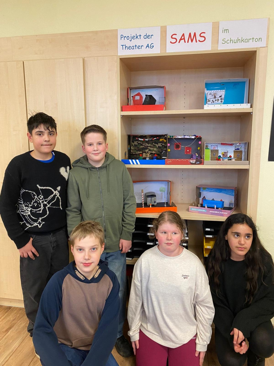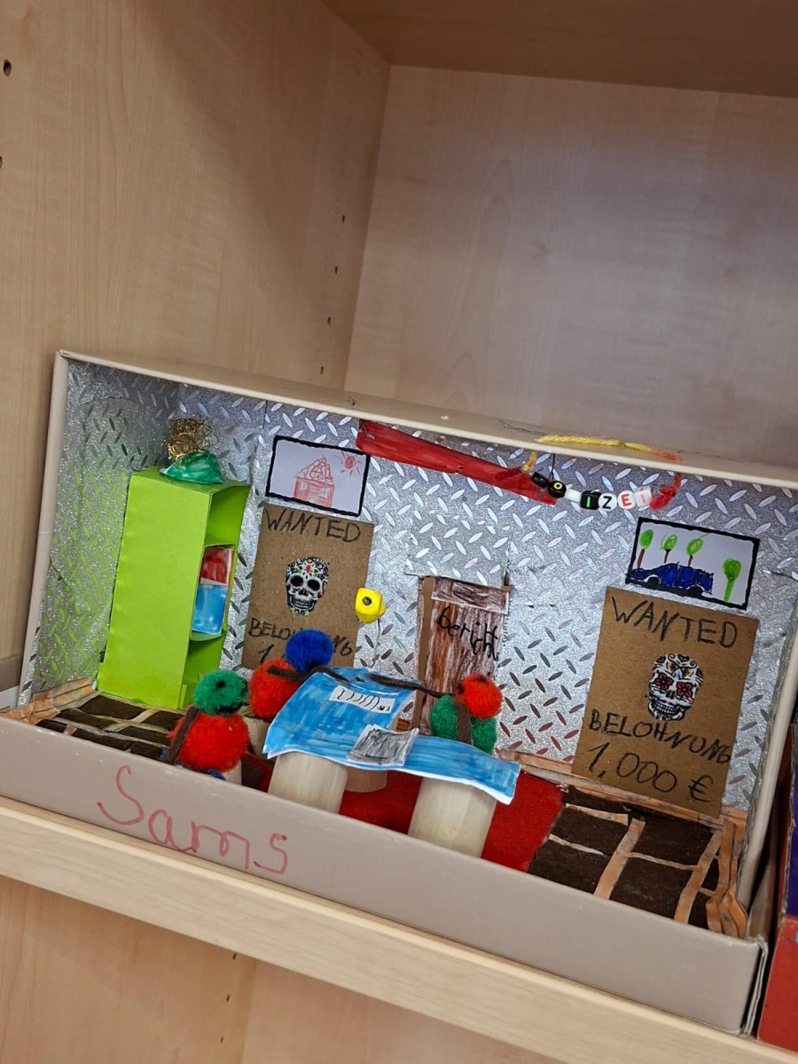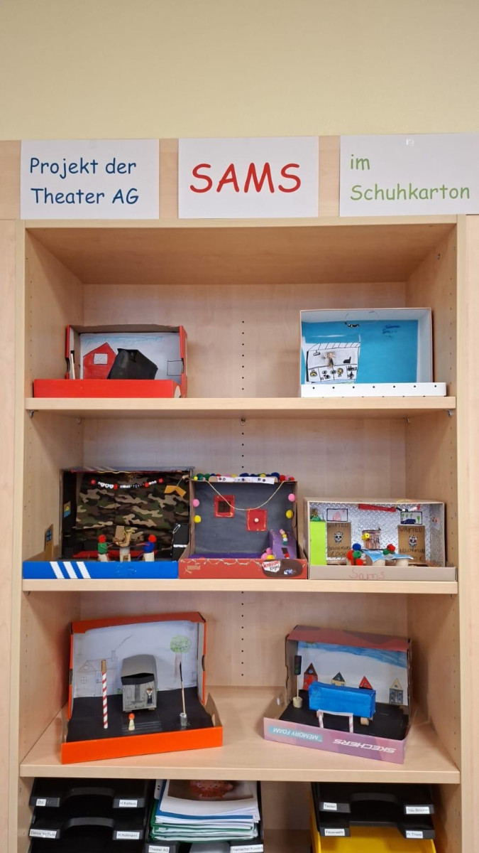 So verwandelten sich einfache Schuhkartons in lebendige Miniaturbühnen, auf denen das Sams mit seinen Wunschpunkten für ordentlich Wirbel sorgt. Die Ergebnisse zeigen eindrucksvoll, wie intensiv sich die Theater-AG mit dem Werk auseinandergesetzt hat – und wie viel Kreativität in unseren Schüler*innen steckt.