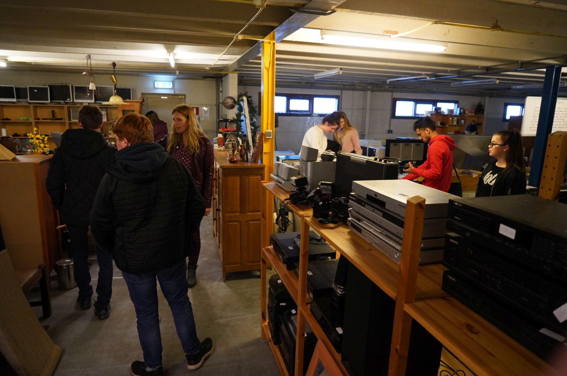 Im nahegelegenen Kringloop -eine Variante des Second Hands- begann die Suche nach geeignetem Material. Die Schüler und Schülerinnen hatten Spaß beim Stöbern und Suchen im antiquierten, etwas verstaubten Ambiente und wurden auch schnell fündig.