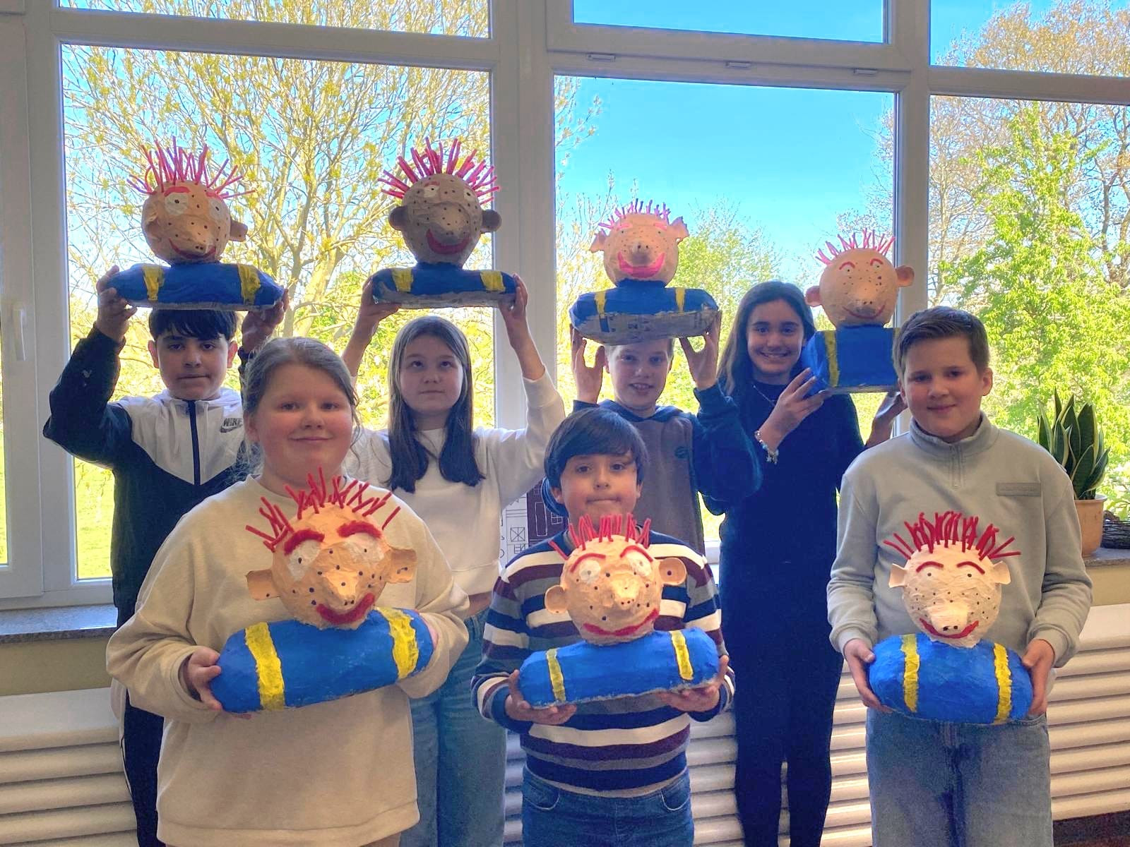 Zum Abschluss der Projektarbeit konnten die Kinder selbst kreativ werden. Mit viel Begeisterung und handwerklichem Geschick gestalteten sie eigene Sams-Skulpturen aus Pappmaché. Schritt für Schritt entstanden so kleine Kunstwerke, die das Sams mit seinen typischen Merkmalen – den roten Haaren, den Wunschpunkten im Gesicht und seinem schelmischen Lächeln – zum Leben erwecken.