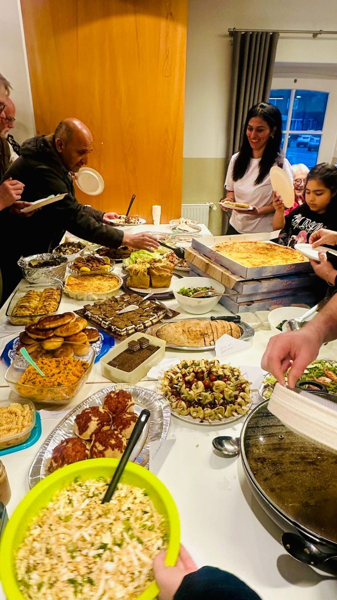 Danach begann das gemeinsame Fastenbrechen. Das Buffet war reich gedeckt und bot eine große Vielfalt an Speisen aus unterschiedlichen Kulturen. Besonders gefreut haben wir uns über eine schöne Überraschung: Die Pizzeria Melis aus Heek unterstützte den Abend spontan mit Pizza und frischem Salat, die zusätzlich zum Buffet beigesteuert wurden. Für diese großzügige Geste möchten wir uns herzlich bedanken.